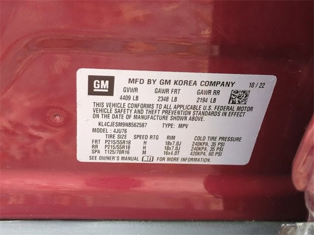 Certified. Cinnabar Metallic 2022 Buick Encore 4D Sport Utility Preferred AWD 6-Speed Automatic Electronic with Overdrive 1.4L ECOTEC Turbo VVT DOHC 4-Cyl SIDI CARFAX One-Owner. Fully inspected by our Service Dept, Apple Car Play, Bluetooth® / Hands free Calling, OnStar, Back Up Camera, Parking Sensors, Remote Start, Push Button Start, 120-Volt Power Outlet, All-Weather Floor Mats, Brake assist, Buick Interior Protection Package (LPO), Color-Keyed Carpeted Cargo Mat (LPO), Exterior Parking Camera Rear, Preferred Equipment Group 1SB, Rear Cross Traffic Alert, Safety Package, Side Blind Zone Alert. 23/30 City/Highway MPG Clean CARFAX.