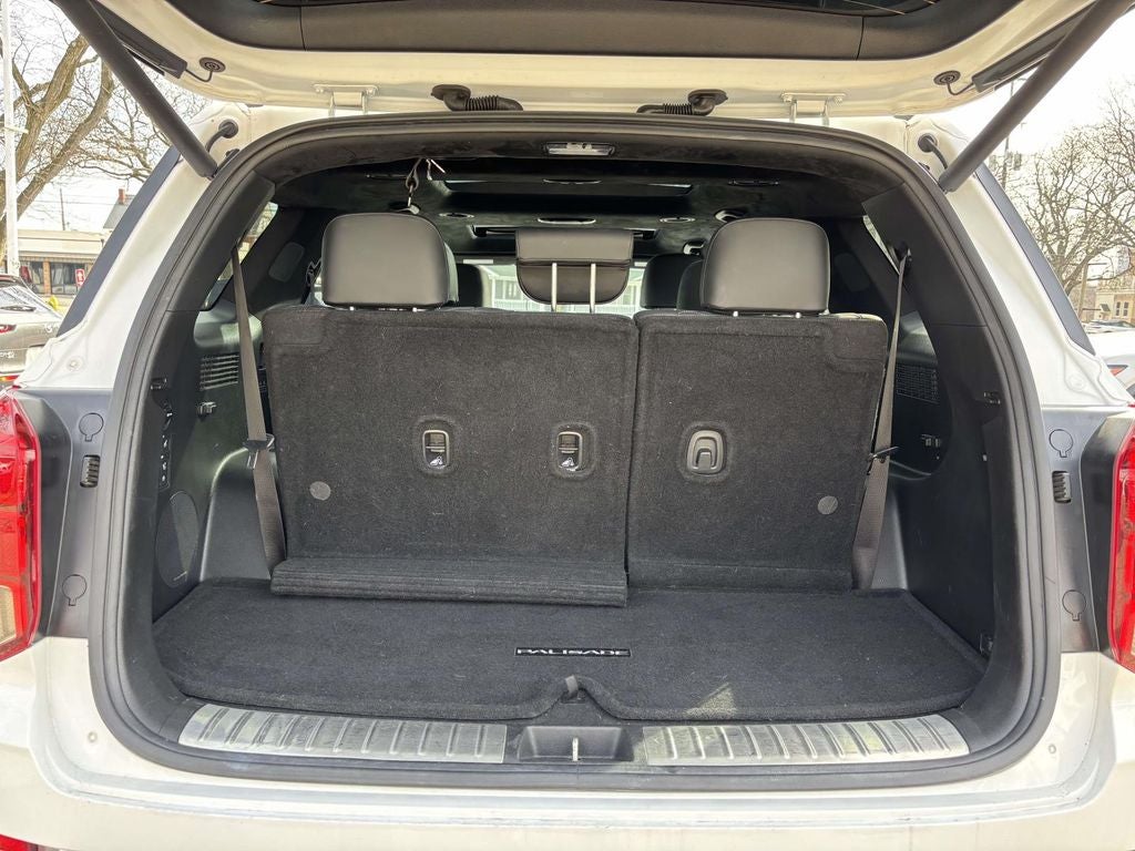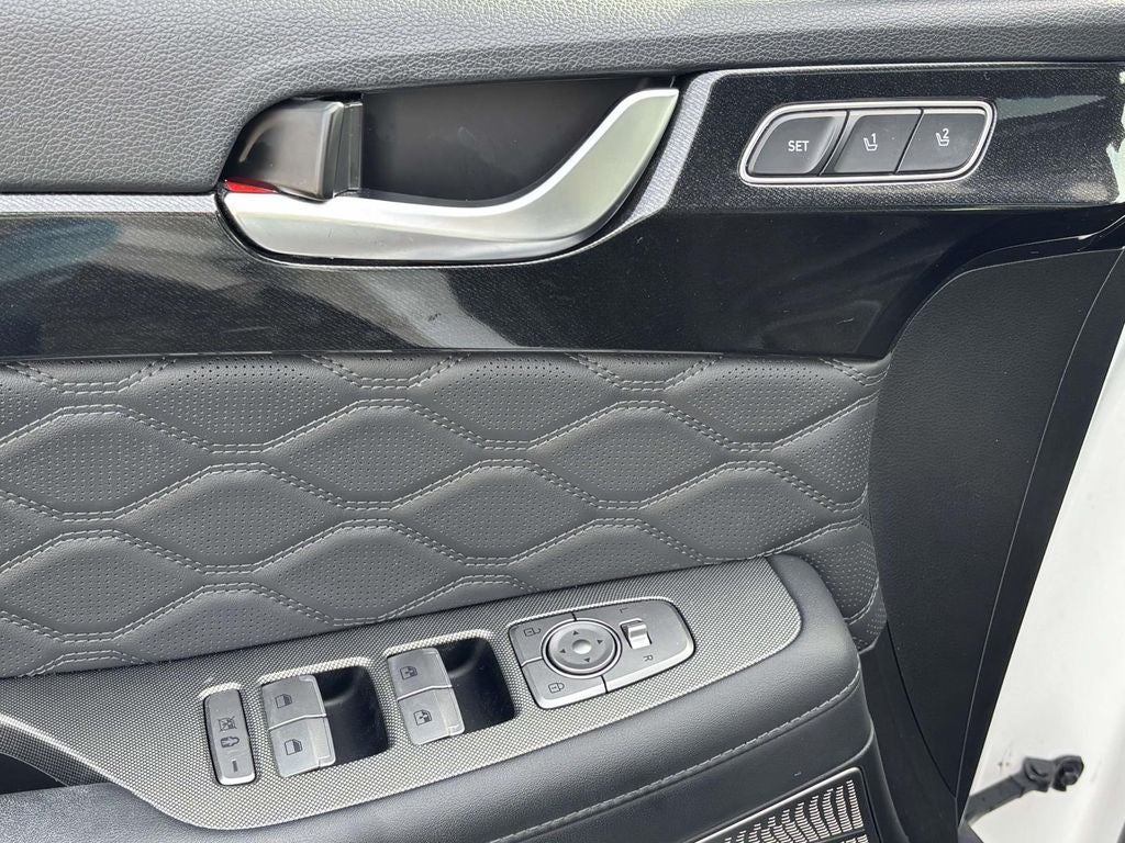 Meticulously crafted with an array of premium features, the Palisade Calligraphy is a true standout in its class. Highlights include - Backup Camera, Cargo Net, Cargo Tray, Cargo Cover/Screen, and Mudguards. But the true allure of this SUV lies in its exceptional package, which includes - 12 Speakers, harman/kardon® Speakers, Radio: AM/FM/MP3 Premium Audio System, Rear air conditioning, Heads-Up Display, Memory seat, Steering wheel mounted audio controls, Power Liftgate, Electronic Stability Control, Auto-leveling suspension, Auto High-beam Headlights, Delay-off headlights, Fully automatic headlights, Heated door mirrors, Turn signal indicator mirrors, Apple CarPlay & Android Auto, Auto-dimming Rear-View mirror, Front reading lights, Heated steering wheel, Trip computer, Navigation System, ABS brakes, Dual front side impact airbags, Front Center Armrest, Heated & Ventilated Front Bucket Seats, Heated & Ventilated Front Seats, Premium Nappa Leather Seat Trim, Ventilated front seats, Ventilated rear seats, Panic alarm, Security system, Power moonroof, Rain sensing wipers, Rear window wiper, and Variably intermittent wipers.