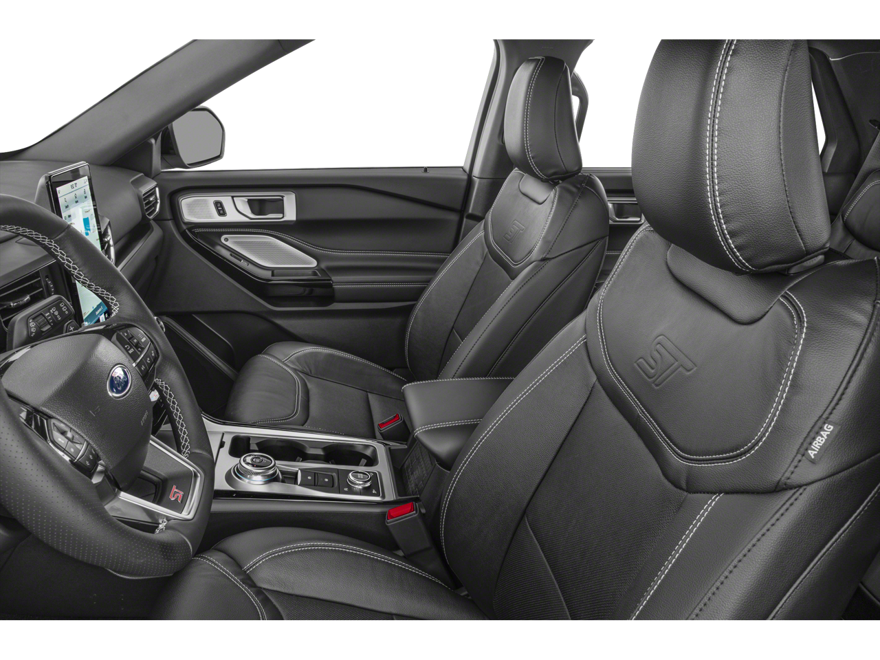 Backup Camera, Explorer ST, 10-Speed Automatic, 4WD, Ebony w/Leather Heated/Ventilated Sprt Captain's Chairs, 10.1 LCD Capacitive Portrait Touchscreen, 2 Additional Speakers, Equipment Group 401A, Evasive Steering Assist, Ford Co-Pilot360 Assist+, Intelligent Adaptive Cruise Control, Radio: B&O Sound System by Bang & Olufsen, Speed Sign Recognition, ST High Package, ST Street Pack, Technology Package, Third Row PowerFold (Folds Flat), Twin Panel Moonroof, Ventilated front seats, Voice-Activated Touchscreen Navigation System, Wheels: 21 Aluminum.