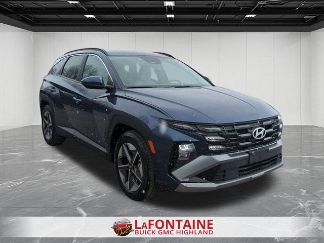 Blue 2025 Hyundai Tucson 4D Sport Utility SEL FWD 8-Speed Automatic with SHIFTRONIC 2.5L I4 DGI DOHC 16V LEV3-SULEV30 187hp CARFAX One-Owner. Fully inspected by our Service Dept, Apple CarPlay & Android Auto, Automatic temperature control, Brake assist, Emergency communication system: Bluelink+, Four wheel independent suspension, Fully automatic headlights, Heated Front Bucket Seats, Heated front seats, Option Group 01, Power Liftgate, Radio: AM/FM/HD Audio System, Remote keyless entry, Security system, Stain & Odor Resistant Cloth Seat Trim, Steering wheel mounted audio controls, Variably intermittent wipers. 25/33 City/Highway MPG Clean CARFAX.We use state-of-the-art software to price our vehicles to be the most competitive in the market. If you have found a better value, let us know about it. We would love the opportunity to keep giving the best values in the market. Contact our Sales Department at 517-507-4955 with your questions and to set up an appointment. Be our guest at LaFontaine Buick GMC of Lansing, and put us to work for you. NOTE: All Equipment Listed May Not Be Available.